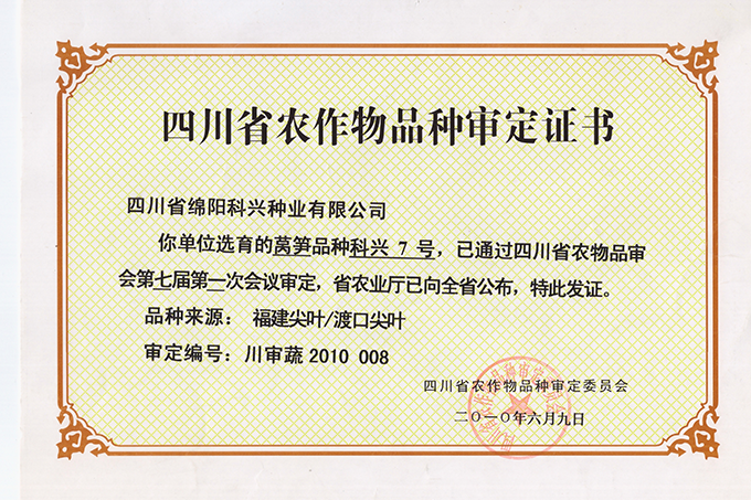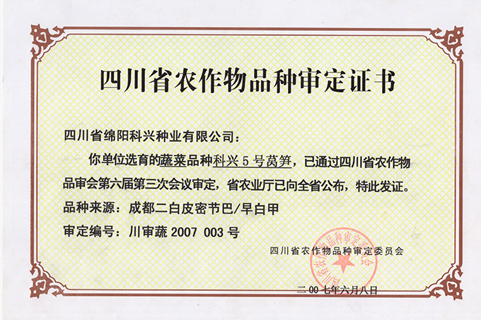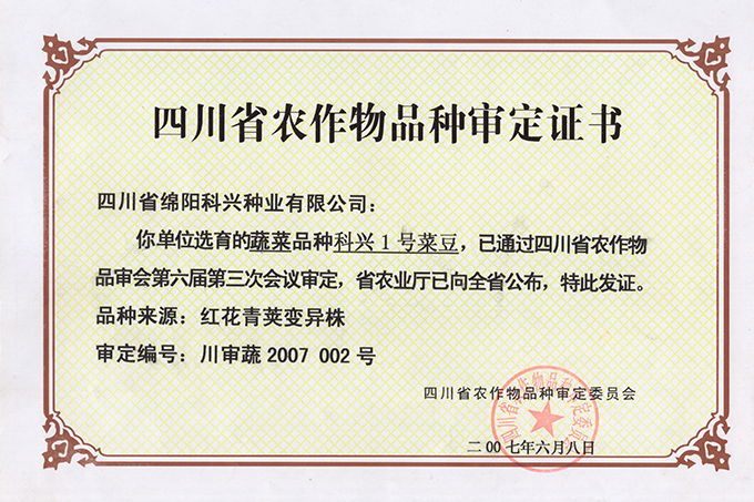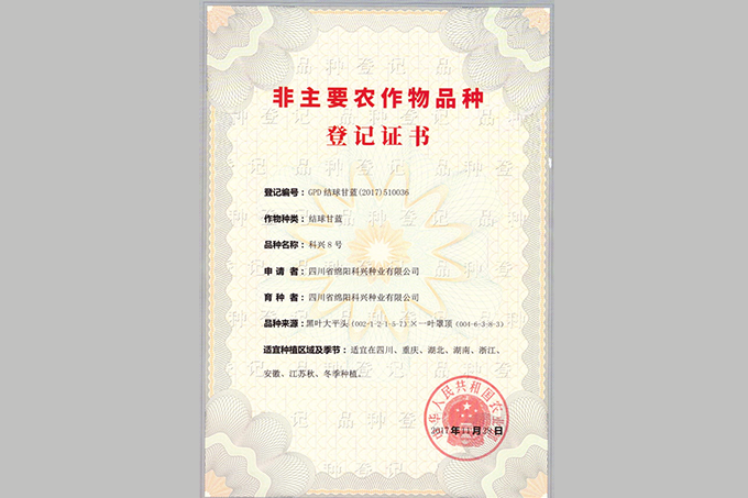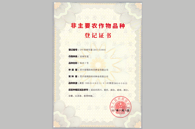 科興7號(hào)甘藍(lán)登記證書(shū)