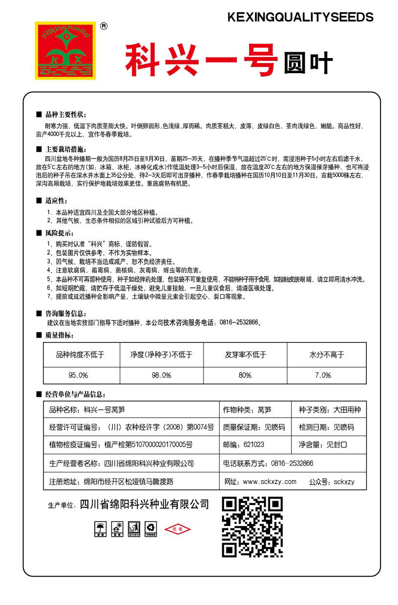1、購(gòu)買(mǎi)時(shí)認(rèn)準(zhǔn)“科興”商標(biāo),謹(jǐn)防假冒。2、包裝圖片僅供參考,不作為實(shí)物樣本。3.因氣候、栽培不當(dāng)造成減產(chǎn),想不負(fù)經(jīng)濟(jì)責(zé)任。4.注意軟腐病、灰需病、菌核病、蚜蟲(chóng)等的危害。5、本品種不可再留種使用、種子如經(jīng)拌藥處理,包裝袋不可重復(fù)使用,不能將種子用于食用.如接觸皮膚眼睛,請(qǐng)立即用清水沖洗。6,如短期貯藏,請(qǐng)貯存于低溫干燥處,避免兒童接.一旦兒童誤食后.請(qǐng)遵醫(yī)處理。7、高溫季節(jié)栽培易抽苔,因此要加強(qiáng)肥水管理,否則會(huì)造成產(chǎn)量降低。萵筍不宜連作.連作病蟲(chóng)害嚴(yán)重
