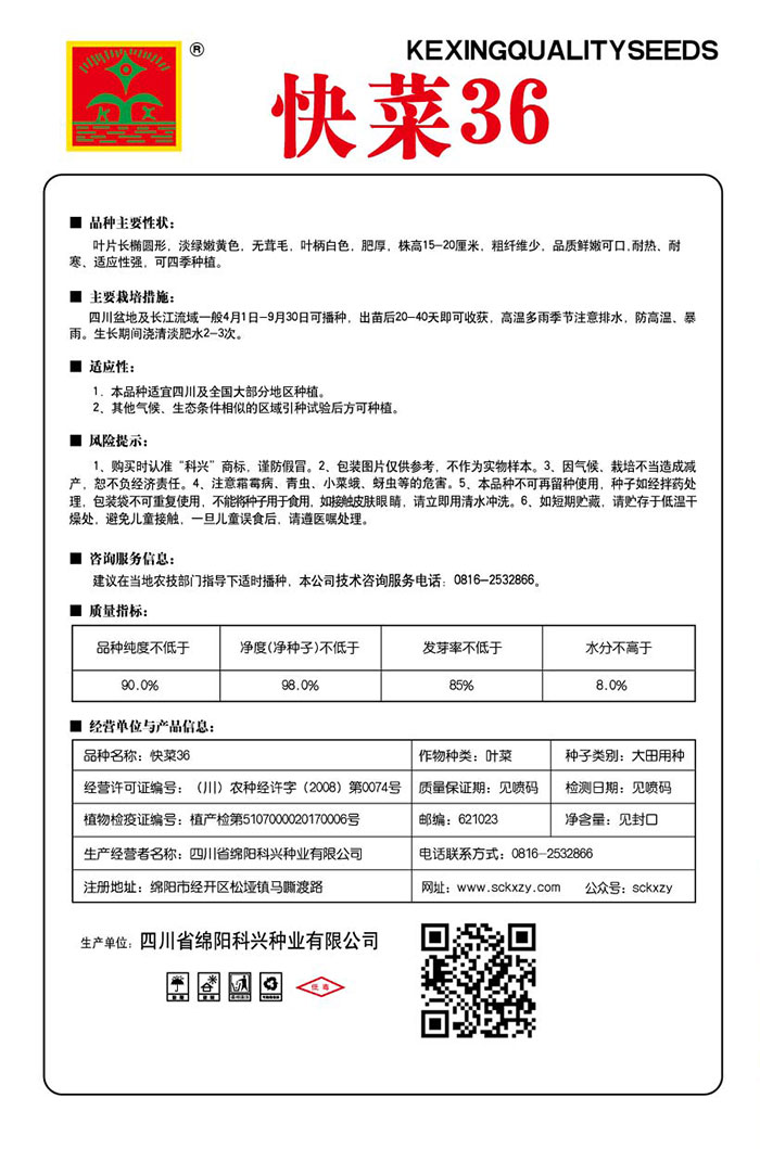 1、購買時認準“科興”商標,謹防假冒。2、包裝圖片僅供參考,不作為實物樣本。3.因氣候、栽培不當造成減產(chǎn),想不負經(jīng)濟責任。4.注意軟腐病、灰需病、菌核病、蚜蟲等的危害。5、本品種不可再留種使用、種子如經(jīng)拌藥處理,包裝袋不可重復使用,不能將種子用于食用。如接觸皮膚眼睛,請立即用清水沖洗。6,如短期貯藏,請貯存于低溫干燥處,避免兒童接.一旦兒童誤食后.請遵醫(yī)處理。7、高溫季節(jié)栽培易抽苔,因此要加強肥水管理,否則會造成產(chǎn)量降低。