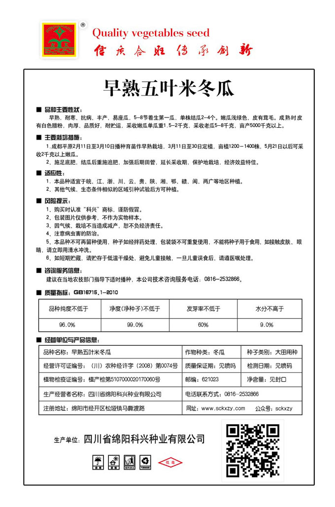 1、購買時認準“科興”商標,謹防假冒。2、包裝圖片僅供參考,不作為實物樣本。3.因氣候、栽培不當造成減產,想不負經濟責任。4.注意軟腐病、灰需病、菌核病、蚜蟲等的危害。5、本品種不可再留種使用、種子如經拌藥處理,包裝袋不可重復使用,不能將種子用于食用。如接觸皮膚眼睛,請立即用清水沖洗。6,如短期貯藏,請貯存于低溫干燥處,避免兒童接.一旦兒童誤食后.請遵醫(yī)處理。7、高溫季節(jié)栽培易抽苔,因此要加強肥水管理,否則會造成產量降低。